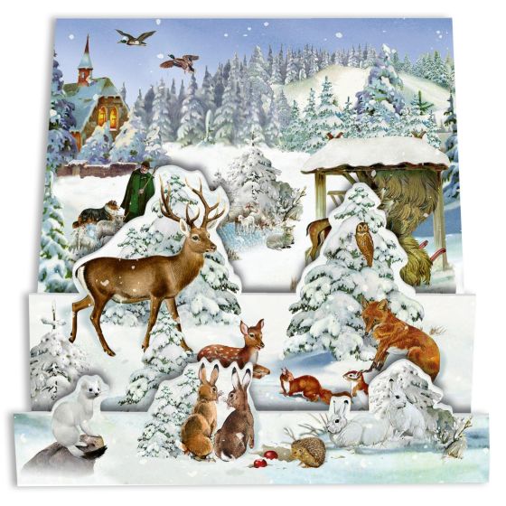 Woodland Creatures 3D advent calendar card (glitter) Size: SML 117x165x30mm Code: *CO-72271 Animals