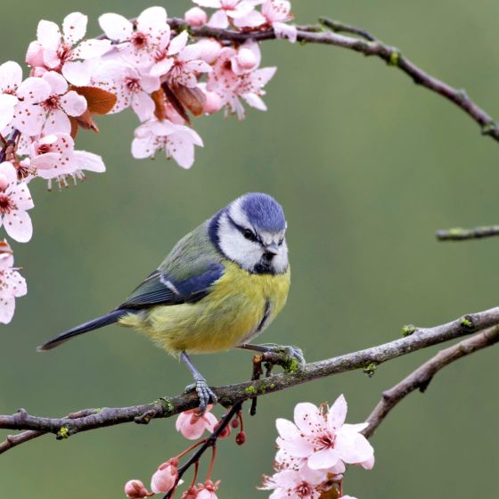 Green Label Bluetit In Blossom photographic card Size: MED 150x150mm Code: OC-BD002