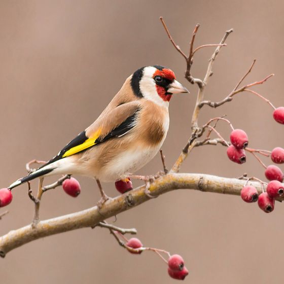 Green Label Goldfinch In Hawthorn photographic card Size: MED 150x150mm Code: OC-BD005