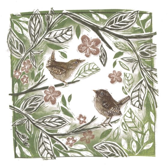 Two Wrens embossed art card Size: MED 160x160mm Code: WS-WS621765P