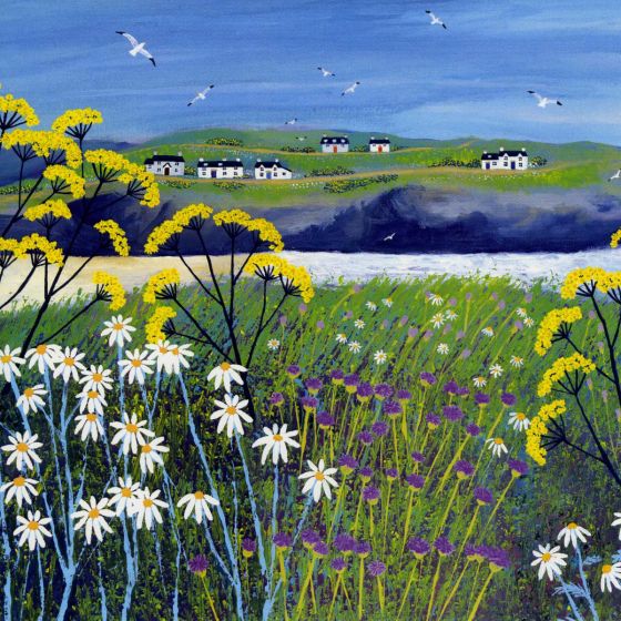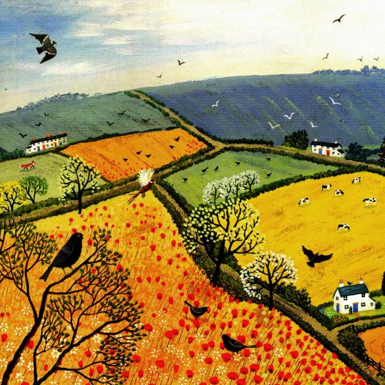 Jo Grundy was born and brought up on a farm in the West Berkshire countryside, so always had a love for nature and the English landscape. She originally trained as a graphic designer and worked in that field for around 14 years before taking time out to have two children. After decing not to graphics (which was becoming more computer orientated) Jo started to work on developing her own painting style. Most of her early pieces were created in mixed media with added stitching and beads to create ornate, decorative pieces. Now Jo works mainly in acrylics and use a specific brand of paint called Jo Sonja by Chroma that comes in a beautiful range of shades, giving her artwork its distinctive colour palette.  She rarely plans what she's going to paint and prefers to work from imagination letting the image evolve.  Her paintings often evoke feelings of nostalgia and give a sense of serenity and calm in this often chaotic world.