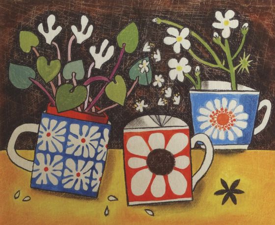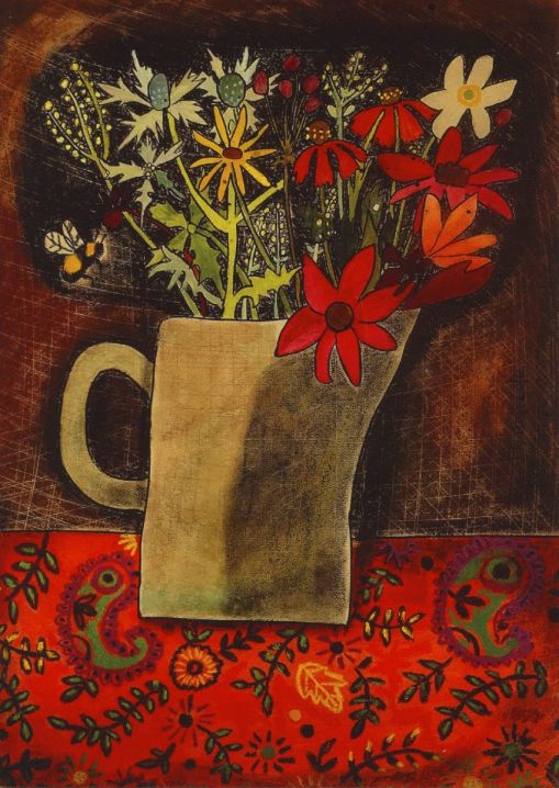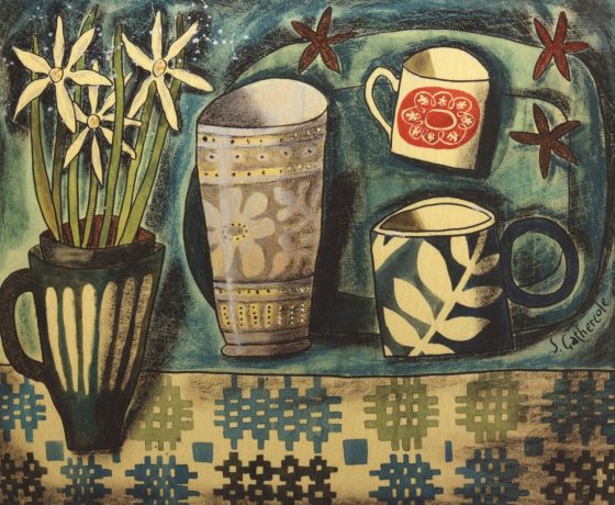 Her work describes small domestic objects, jugs, plates and mugs, seen from an intuitive, sometimes dream-like perspective. Speaking about her work, “The simple, quiet act of placing a glass of wild flowers against a coloured piece of fabric is the kind of thing that interests me”. You can see her work here: https://www.susangathercole.co.uk/