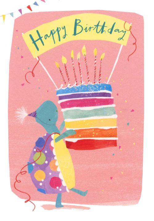 Tortoise & Rainbow Cake birthday card Size: MED 172x120mm Code: WS-WS613272K