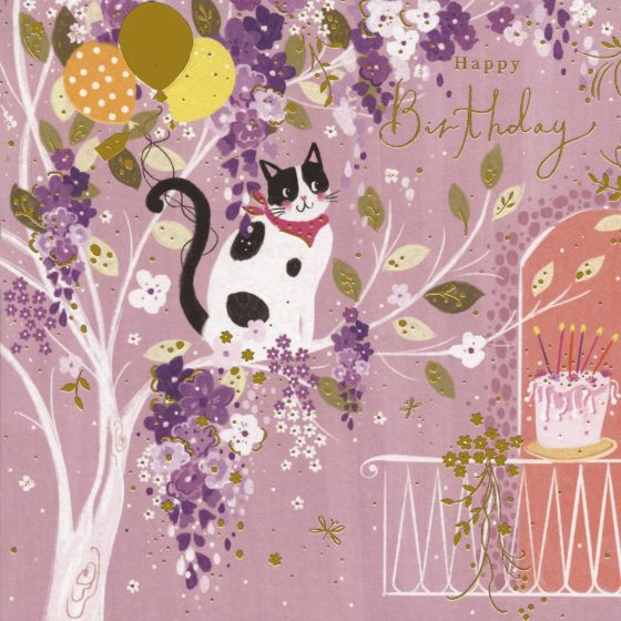 Blossom Cat birthday card Size: MED 155x155mm Code: WF-F205