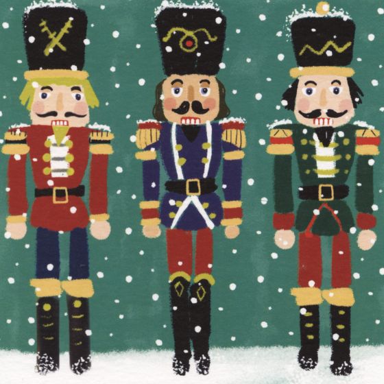 PACK OF 8 CARDS - MACMILLAN CANCER Nutcracker Trio charity Christmas cards pack Size: MED 130x130mm Code: ZMG-MAEX122