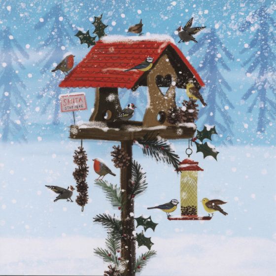 PACK OF 8 CHRISTMAS CARDS Festive Bird Table christmas cards pack Size: MED 123x123mm Code: ZMG-XPE232