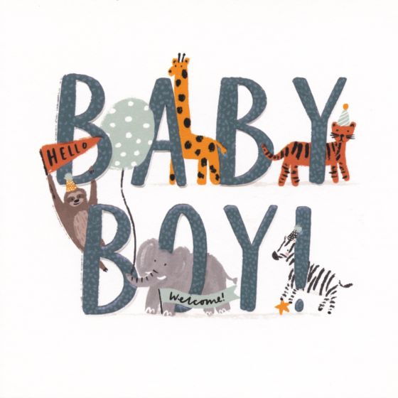 Zoo Animals new baby boy card Size: MED 155x155mm Code: PL-ODB002