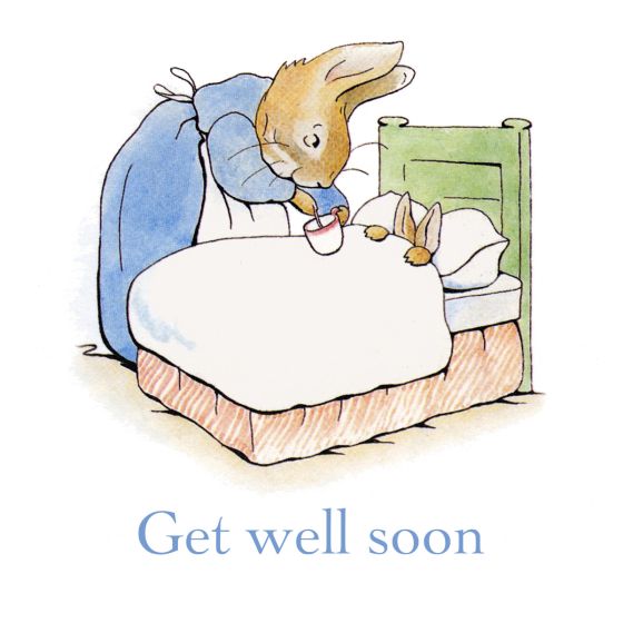 Green Label Peter Rabbit get well soon card Size: MED 150x150mm Code: OC-BP024