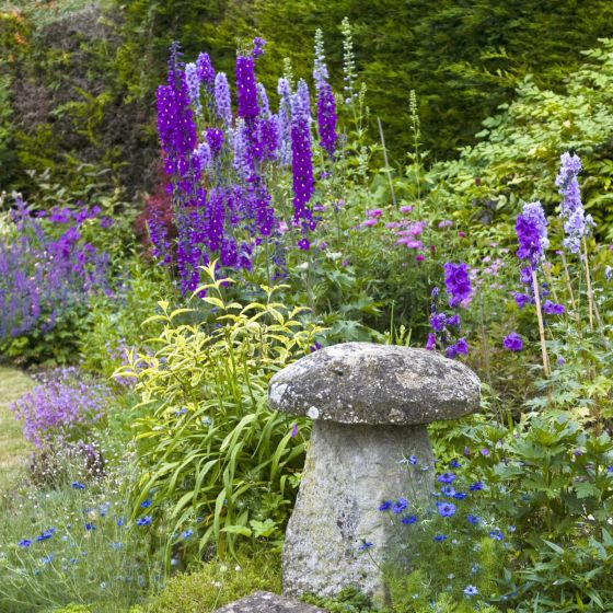 Green Label Delphiniums & Staddle Stone photographic card Size: MED 150x150mm Code: OC-SG003