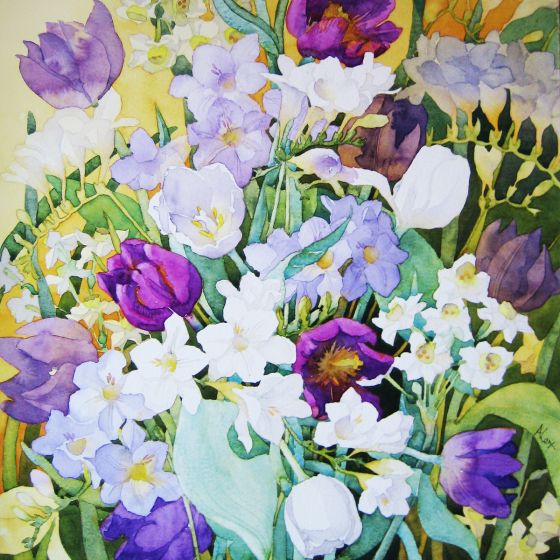 Green Label Crocuses & White Freesias art card Size: MED 150x150mm Code: OC-RA009