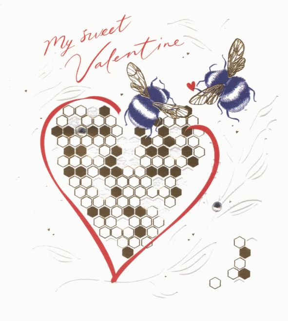 My Sweet Valentine - A luxury St Valentine's Day card illustrated with two bees and some honeycomb and embellished with sequins and gold foil