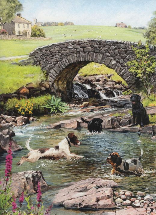 Dogs in the River art birthday card Size: MED 172x122mm Code: CR-10854